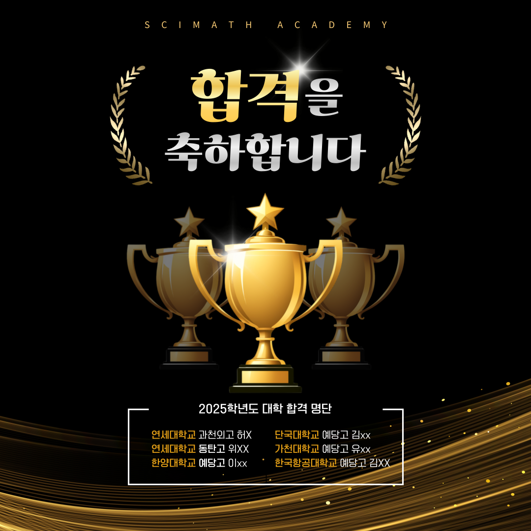 매우 높은 대학 합격률을 자랑하는 우리 학원은 체계적인 학습 프로그램과 전문 강사진의 맞춤형 지도를 통해 학생들의 학업 성취를 극대화합니다. 학생 개개인의 특성에 맞춘 학습 전략과 세심한 피드백을 제공하여, 학습 능력을 높이고 자신감을 키워 대학 입시에서 최상의 결과를 얻도록 지원합니다.